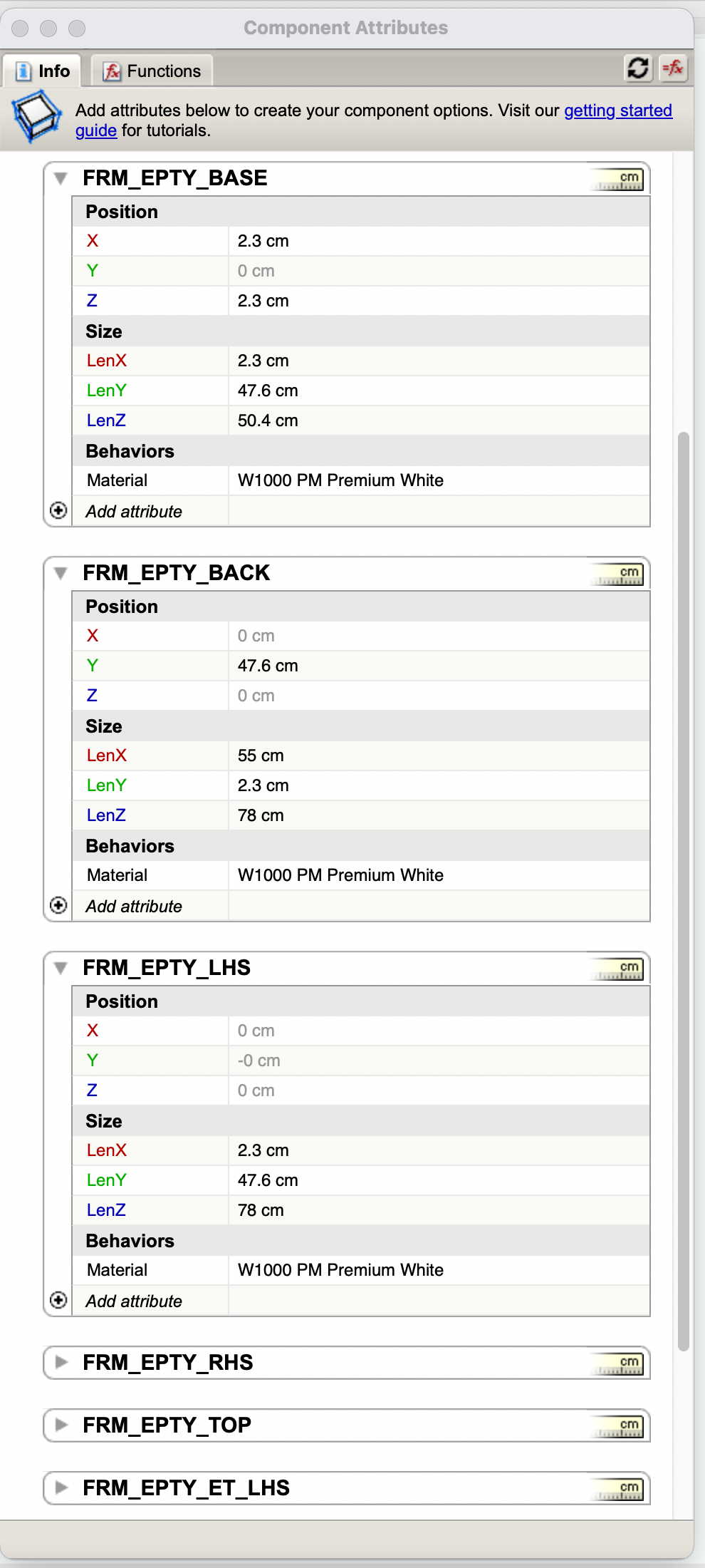 Tags : Tags built into the base cabinet in order to organise the components in larger models and manufacturing.