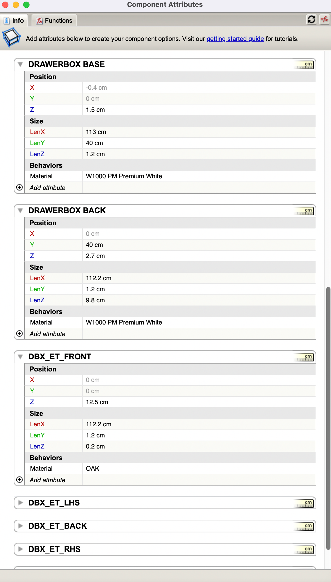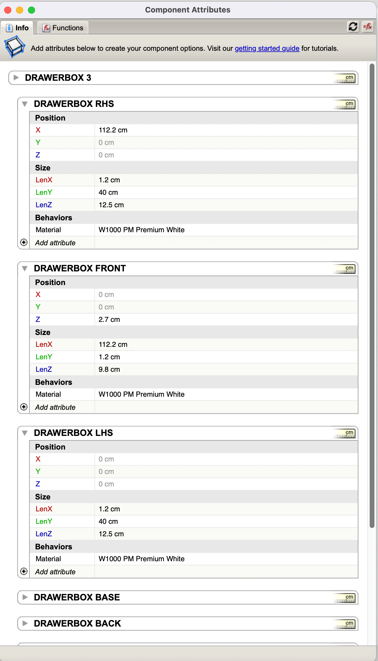 if importing a new drawerbox - drag into the component & rename immediatley. double click the component, highlight all components within the model and click ‘make unique’
