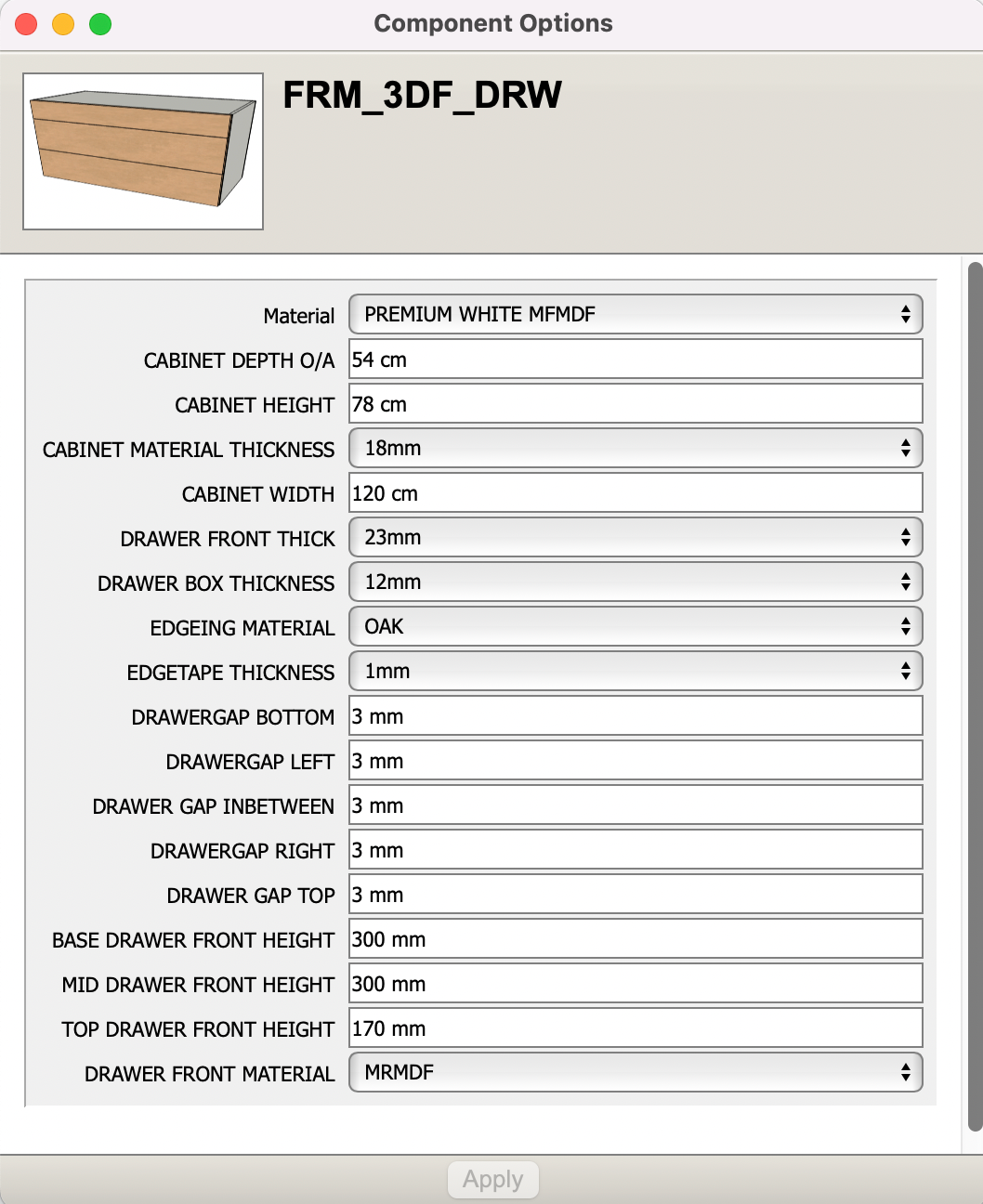 DRAWERFRONT THICKNESS: =FRM_3DF_DRW!DFRONT_THICK